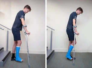 - Bring your crutches up onto the step.