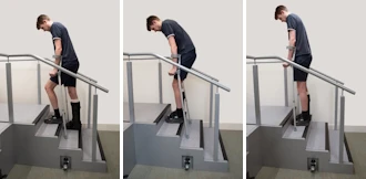 - Put your affected leg on the step below. Take care not to put more weight on your affected leg than you are allowed to.